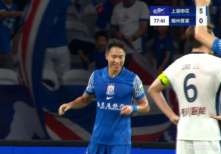 第76分钟,申花完成第5个换人名额,于汉超换下阿苏埃。第76分钟,于汉超送妙传,杨泽翔轻松破门,申花5-0!